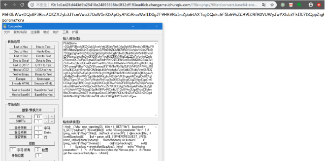 对于 index.php 也同理:?file=php://filter/convert.base64-encode/resource=index.php。