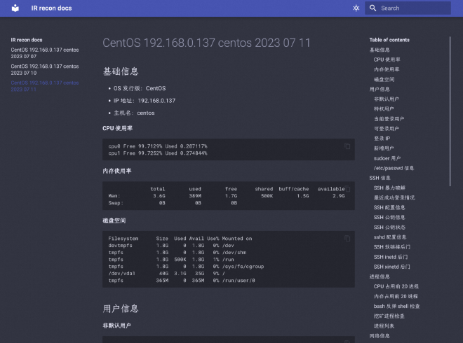 irtk 是我刚入职时编写的一个小工具,旨在快速、全面、自动化地收集 Linux 主机关键安全信息。由于 SIREN 的出现,如今该工具已废弃。