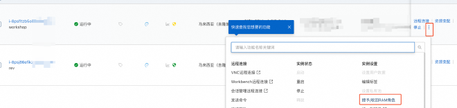 将 RAM 角色 workshop-test 绑定到 ECS workshop 上: