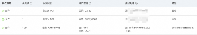 首先创建用于反弹 Shell 的 ECS,有公网 IP 即可,规格可以选择最低配(1C 0.5G 或 1C 1G)。安全组参考: