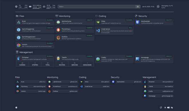 最初接触到 selfhosted service 是因为迷你主机的硬盘空间比较大,放着不用也比较浪费,于是产生了搭建一个私有网盘用来存放和备份文件的想法,可以帮忙减轻手机及笔记本硬盘的压力。随后渐渐发掘了越来越多有趣的 selfhosted service,便开始逐一部署,打造自己的 Homelab。
